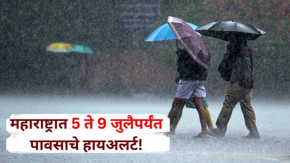 5 जुलै : सिंधुदुर्ग, रत्नागिरी, रायगड, ठाणे, पालघर तसेच नाशिक ,पुणे, सातारा व कोल्हापूरच्या घाटमाथ्यावर ऑरेंज अलर्ट देण्यात आलाय .मुंबई,नंदुरबार, धुळे ,जळगाव,छत्रपती संभाजीनगर ,जालना, परभणी, हिंगोली जिल्ह्यांना पावसाचा यलो अलर्ट