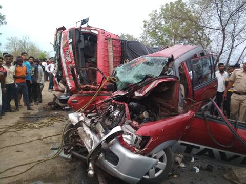 यवतमाळ: यवतमाळ- नांदेड मार्गावर भीषण अपघात झाला. या अपघातात 10 जण जागीच ठार, तर 2 जण गंभीर जखमी झाले आहेत. आज पहाटे ही भीषण दुर्घटना घडली. यवतमाळ- नांदेड मार्गावरील कोसदनी घाटात ट्रक आणि तवेरा गाडीची समोरा समोर धडक होऊन हा अपघात झाला. अपघातग्रस्त कुटुंब पंजाबमधील असून, ते नांदेड इथे दर्शनाला जात होते. त्यावेळी त्यांच्यावर काळाने घाला घातला. दरम्यान जखमींना यवतमाळच्या शासकीय रुग्णालयात उपचारासाठी दाखल करण्यात आलं आहे. तब्बल 10 जण जागीच ठार झाल्याने हा अपघात किती भीषण होता याची प्रचिती येऊ शकते. तवेराचा अक्षरश: चक्काचूर झाला आहेच, मात्र ट्रकचाही पुढचा भाग चेपला आहे.