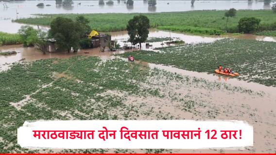 Marathwada Rain Damage: मराठवाड्यात मागील दोन दिवसात बेफाम पावसाने 12 ठार झाले आहे. पावसानं दाणादाण उडाली असून परभणी, हिंगोली, नांदेड जिल्ह्यात 5 लाख 8 हजार 68 हेक्टरवरील पिकांचे नुकसान झाले आहेत. गेल्या दोन दिवसात अर्ध्याहून अधिक महसूलमंडळात अतिवृष्टीची नोंद करण्यात आली असून पुरात वाहून, पाण्यात बुडून तसेच वीज पडल्याने 12 जणांचा मृत्यू झाला आहे.
