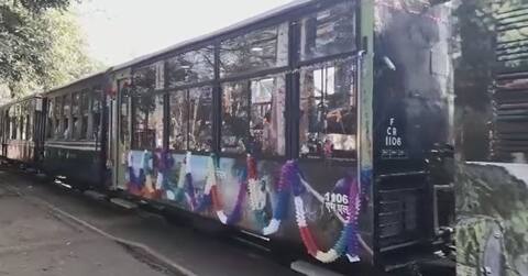 आज सकाळी नेरळहून माथेरानकडे मिनीट्रेन फुग्यांनी सजविण्यात आली होती. माथेरानची मिनी ट्रेन ही नेहमीच पर्यटकांची आकर्षण राहिली आहे. गेल्या काही दिवसांपूर्वी मिनी ट्रेनच्या रुपात बदल करण्यात आला आणि जुन्या गाडीच्या डब्यांवर हिरव्या निसर्गाचा साज चढवण्यात आली.
