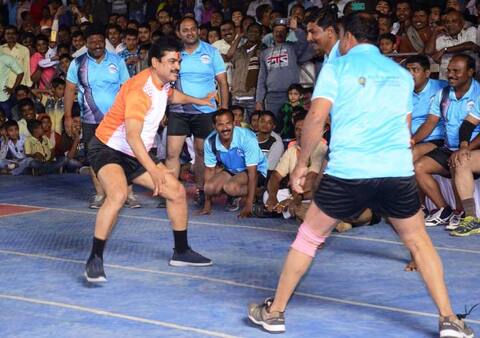 अहमदनगर : जलसंधारणमंत्री आणि अहमदनगर जिल्ह्याचे पालकमंत्री राम शिंदे चक्क कबड्डीच्या मैदानात उतरलेले पाहायला मिळाले. अहमदनगर जिल्ह्यातील कर्जतला राज्यस्तरीय छत्रपती शिवाजी महाराज चषक कबड्डी स्पर्धेत त्यांनी सहभाग घेतला. मात्र राम शिंदे यांच्या संघाचा निसटता पराभव झाला. कर्जतचे नगराध्यक्ष नामदेव राऊत यांच्या संघाने राम शिंदेंच्या संघावर मात केली. दोन्ही संघात भाजप, काँग्रेस, राष्ट्रवादीसह अनेक राजकीय कार्यकर्त्यांनी सहभाग होता. राम शिंदे यांनी स्पोर्ट्स ड्रेस परिधान करुन झोकात एंट्री केली. यावेळी प्रेक्षकांनीही टाळ्या-शिट्ट्या वाजवून उत्स्फूर्त दाद दिली. राम शिंदे विरुद्ध नगराध्यक्ष नामदेव राऊत यांच्या संघात शनिवारी सायंकाळी प्रदर्शनीय सामना रंगला. या सामन्यात पालकमंत्री शिंदे यांच्या संघाला पाच गुणांनी पराभव स्वीकारावा लागला. राऊत यांच्या संघाने नाणेफेक जिंकली. सुरुवातीपासूनच नगराध्यक्ष राऊत यांचा संघ आघाडीवर होता. मात्र दुसर्या सत्रात शिंदे यांच्या संघाने आक्रमक खेळ केला. पण नगराध्यक्षांच्या संघाने मंत्री महोदयांच्या संघावर मात केली. नगराध्यक्ष राऊत संघाने 21, तर पालकमंत्री संघाने 16 गुण मिळविले. कर्जतचे नगराध्यक्ष नामदेव राऊत आणि भाजपाचे तालुकाध्यक्ष अशोक खेडकर यांनी उत्कृष्ट खेळी करुन शिंदे यांच्या संघावर मात केली. राम शिंदे यांच्या संघात शिवछत्रपती प्रतिष्ठानचे अध्यक्ष सुभाषचंद्र तनपुरे, बापूराव तोरडमल, राष्ट्रवादी युवक काँग्रेसचे अध्यक्ष नितीन धांडे, त्रिमूर्ती उद्योग समूहाचे अध्यक्ष महेंद्र गुंड, क्रीडाशिक्षक सुनील नेवसे, रेल्वे अधिकारी प्रशांत पाटील, गणेश जेवरे, शिवाजी धांडे, प्रकाश धांडे, राजेंद्र खराडे यांचा समावेश होता. तर नगराध्यक्ष संघात रावसाहेब गरड, काँग्रेसचे तालुकाध्यक्ष बाळासाहेब साळुंके, भाजपाचे तालुकाध्यक्ष अशोक खेडकर, चापडगावचे सरपंच आप्पासाहेब घनवट, सचिन धोदाड, राम ढेरे, अनिल गदादे, व्यापारी अभय बोरा यांचा समावेश होता.