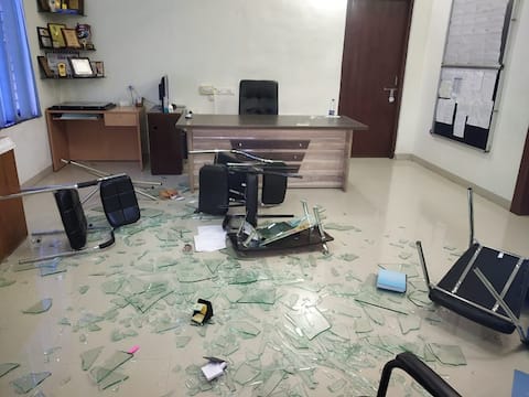 जैन इंटनॅशनल स्कुलमध्ये गुरुवारी दुपारी पावणे दोन वाजता प्रवेश घ्यायचा आहे. असे सांगून दोन जणांनी मुख्याध्यापक संतोष कुमार यांच्या केबिनमध्ये प्रवेश केला. सुरुवातीला शैक्षणिक साहित्य खरेदीची सक्ती केली जाते आणि शुल्क आकारणी संदर्भात चर्चा सुरु केली. नंतर अचानक मिसकॉल येताच, महाराष्ट्र नवनिर्माण सेनेचा विजय असो, अशा घोषणा देत बसलेलीच खुर्ची उचलून तोडफोड करण्यास सुरुवात केली. टेबलची काच आणि खिडकीची काच फोडून घोषणा देत निघून गेले. या सर्व प्रकारामुळे सुरक्षेबाबत भिती व्यक्त करत आज (शुक्रवार) रोजी शाळेचा ऑनलाइन क्लास बंद राहिल, अशी माहिती मुख्याध्यापकांनी दिली. शुल्क वसुलीसाठी सक्ती केली जात नाही, पालकांना विनंती करण्यात आलेली आहे. शाळा कशी चालवायची असे प्रकार व्हायला लागले तर शाळा बंद करावी लागेल. शाळा प्रशासन आणि पालकांच्या मधील ही बाब असून, यात त्यांचा काय संबंध, असे मुख्याध्यापक संतोष कुमार यांनी म्हटले आहे.