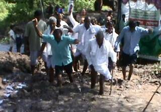 नांदेडच्या लोह्यात रस्ताच नाही, गावकरी चिखलात उपोषणाला