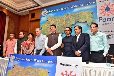 मुंबई : पाणी फाऊंडेशन तर्फे घेण्यात येणारी सत्यमेव जयते वॉटर कप स्पर्धा 2018 ची घोषणा आज करण्यात आली. यावेळी मुख्यमंत्री देवेंद्र फडणवीस, अभिनेते अमिर खान, प्रसिद्ध उद्योगपती रतन टाटा, मुकेश अंबानी, सत्यजित भटकळ, अमिरच्या पत्नी किरण राव आणि पर्यटनमंत्री जयकुमार रावल उपस्थित होते. वॉटरकप स्पर्धेचं हे तिसरं वर्ष आहे. मुख्यमंत्री फडणवीसांनी या स्पर्धेचं कौतुक करताना वॉटर कप स्पर्धेने गाव एकसंघ झालेलं पाहायला मिळाल्याचं म्हटलं. तर यंदा या स्पर्धेत तब्बल 75 तालुके सहभागी होणार असल्याचं सांगितलं. यंदा सत्यमेव जयते वॉटर कप स्पर्धेचा कालावधी 8 एप्रिल ते 22 मे 2018 आहे. विजेत्या पहिल्या तीन गावांना अनुक्रमे 75 लाख रुपये, 50 लाख रुपये आणि 40 लाख रुपये रोख पारितोषिक दिलं जाईल. स्पर्धेत प्रत्येक तालुक्यातील आघाडीवर असलेल्या गावालाही प्रत्येकी दहा लाख रुपये रोख पारितोषिक मिळणार आहे. अशा रीतीने स्पर्धेत विजेत्या गावांना मिळणारी पारितोषिकांची एकूण रक्कम जवळपास 10 कोटी रुपये असेल. यंदा ही स्पर्धा महाराष्ट्राच्या 24 जिल्ह्यांतील 75 तालुक्यांपर्यंत विस्तारली आहे. सत्यमेव जयते वॉटर कप स्पर्धा ही जलसंधारण आणि पाणलोट व्यवस्थापनाची उत्तम कामगिरी करण्यासाठी वेगवेगळ्या गावांमध्ये निर्माण केलेली स्पर्धा आहे. स्पर्धेचा पाया हा ज्ञान आहे. स्पर्धेत भाग घेणाऱ्या प्रत्येक गावातील पाच प्रशिक्षणार्थीना 'पानी फाऊंडेशन’ पाणलोट विकासाच्या विज्ञानाचे प्रशिक्षण देते. त्यानंतरच हे गावकरी ‘सत्यमेव जयते वॉटर कप’ स्पर्धेत भाग घेतात. 45 दिवस चालणाऱ्या या स्पर्धेत गावकरी श्रमदानाने तसेच मशीनच्या सहाय्याने जलसंधारणाच्या महत्त्वपूर्ण रचना उभारुन पाणी साठवण क्षमता निर्माण करतात. गेल्या वर्षी झालेल्या ‘दुसऱ्या सत्यमेव जयते वॉटर कप’ स्पर्धेत 30 तालुक्यांतील एकूण एक हजार 321 गावांनी भाग घेतला आणि तब्बल 8361 कोटी लिटर पाणी साठवण क्षमता निर्माण केली. त्यात वर्धा जिल्ह्यातील आर्वी तालुक्यातील काकडदरा या छोट्याशा आदिवासी गावाने बाजी मारत वॉटर कप 2017 जिंकला. निवडलेल्या तालुक्यातील प्रत्येक गाव स्पर्धेत भाग घेण्यास पात्र असून त्यांना आमीर खान यांच्या सहीचे आमंत्रण पत्र पाठवलं गेलं आहे. महाराष्ट्र शासनाच्या सहकार्याने वॉटर कप स्पर्धेचा प्रवास आणि हेतू स्पष्ट करणारे भव्य छायाचित्र प्रदर्शन या सर्व 75 तालुक्यांत आयोजित करण्यात आलं असून त्याला लाखो ग्रामस्थ आणि विद्यार्थ्यांनी भेट दिली आहे. स्पर्धेची प्रवेशिका दोन भागांत आहे. आतापर्यंत साधारणपणे 7 हजार गावांनी प्रवेशिकेचा पहिला भाग सादर केला आहे. अर्जाच्या दुसऱ्या भागात गावाने ग्रामसभा घेऊन ‘पाणी फाऊंडेशन’तर्फे घेतल्या जाणाऱ्या चार दिवसा