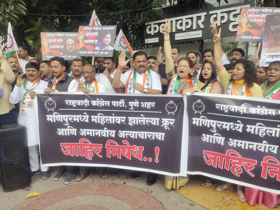 Pune News : मणिपुरमध्ये महिलांवर सुरू असलेल्या अत्याचाराच्या (Manipur Violance) निषेधार्थ पुणे शहर राष्ट्रवादी काँग्रेस पक्षातर्फे निषेध आंदोलन करण्यात आले. पुण्यातील गुडलक चौकात राष्ट्रावादीचे नेते आणि कार्यकर्ते एकत्र येत त्यांनी हे आंदोलन पुकारलं होत. मोठ्याने घोषणाबाजीदेखील करण्यात आली. अटक झालेल्या दोघांवर कठोर कारवाई करावी, अशी मागणी राष्ट्रवादी कॉंग्रेसच्यावतीने करण्यात आली आहे.
