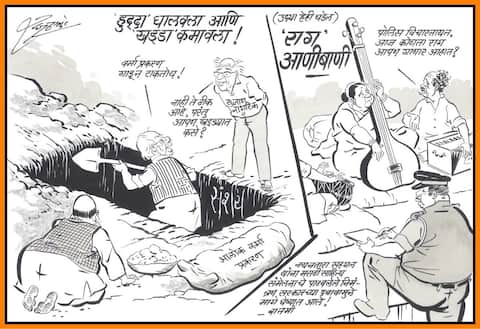 मुंबई : राजकीय घडामोडींवर सातत्याने व्यंगचित्राच्या माध्यमातून भाष्य करणाऱ्या मनसे अध्यक्ष राज ठाकरेंनी आज अजून एक व्यंगचित्र काढले आहे. या व्यंगचित्राद्वारे राज ठाकरेंनी पंतप्रधान नरेंद्र मोदींच्या 'वर्मा'वर बोट ठेवले आहे. एकाच व्यंगचित्रात दोन राजकीय घडामोडींवर भाष्य करत राज ठाकरेंनी एकाच दगडात दोन पक्षी मारले आहेत, असे बोलले जात आहे. राज यांनी आलोक वर्मा प्रकरणावरून आणि अघोषित आणीबाणीवरून मोदी सरकारवर टीका केली आहे. हे व्यंगचित्र भाजपाच्या कार्यकर्त्यांना आणि नेत्यांना चांगलेच झोंबणार असे दिसत आहे. राज ठाकरे यांनी हे व्यंगचित्र त्यांच्या ऑफिशियल ट्विटर आणि फेसबुक पेजवर अपलोड केले आहे. निवड समितीने दोन दिवसांपूर्वी सीबीआय संचालक पदावरून आलोक वर्मा यांची हकालपट्टी केली. आलोक वर्मा यांची बदली करण्यात आली. परंतु तो विभाग न स्वीकारता आलोक वर्मा यांनी राजीनामा दिला. या घटनेवरुन राज यांनी व्यंगचित्राद्वारे मोदींवर निशाणा साधला आहे. व्यंगचित्राच्या दुसऱ्या बाजुला नरेंद्र मोदी खड्डा खणत असल्याचे पहायला मिळत आहे. त्या खड्ड्याला राज यांनी संशय असे नाव दिले आहे. या चित्राला 'हुद्दा गमावला आणि खड्डा कमावला' असा मथळा दिला आहे. खड्ड्याशेजारी आलोक वर्मा प्रकरण मृतदेहाप्रमाणे दाखवले आहे. मोदी हे प्रकरण खड्ड्यात गाडून लपवू पाहत आहेत. असे या व्यंगचित्रात दाखवले आहे. त्याचवेळी सुजान नागरिक मोदींना 'तुम्ही खड्ड्यात कसे काय?' असे विचारत आहेत. व्यंगचित्राच्या दुसऱ्या भागात नयनतारा सहगल प्रकरणावरून राज यांनी सरकारचा समाचार घेतला आहे. अखिल भारतीय मराठी साहित्य संमेलनाच्या निमित्ताने आणीबाणीची आठवण झाल्याचे राज ठाकरे सांगत आहेत. तसेच एक गायिका तंबोरा घेऊन गायन करण्यास बसली आहे. गायिकेसमोरच्या हार्मोनियम वादक विचारतोय की, 'पोलीस विचारतायत की आज तुम्ही कोणता राग गाणार आहेत'.