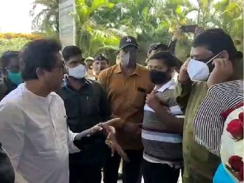 आज राज ठाकरे नाशिकमध्ये आहेत. ते नाशिकमध्ये आल्यानंतर त्यांचं स्वागत करण्यासाठी माजी महापौर अशोक मुर्तडक समोर आले. यावेळी बुके देऊन स्वागत करताना राज ठाकरे यांनी त्यांना इशारा करत मास्क काढण्याच्या सूचना दिल्या.