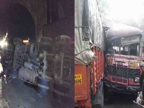 सांगलीत एसटी-आयशरचा अपघात, तर अमृतांजन पुलाच्या पिलरवर कंटेनर आदळला