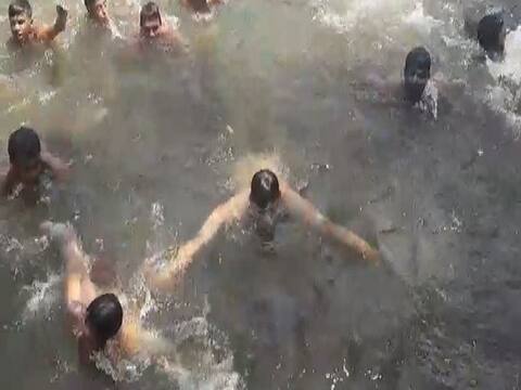 सुरक्षा रक्षक मनाई करत असतानाही राजेंनी पाण्यात सूर मारला. खुद्द राजांना आपल्यामध्ये पाहून नदीत पोहत असलेल्या तरुणांनीसुद्धा भरपूर आनंद झाला.