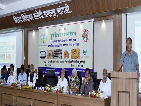 सांगली : कृषि व पणन विभागामार्फत बुधवारी सांगलीत बेदाणा परिषद तसेच सांगली बेदाणा, सांगली हळद भौगोलिक मानांकन अधिकृत वापरकर्ता नोंदणी कार्यशाळा आयोजित करण्यात आली होती. सांगली जिल्ह्यात द्राक्ष व हळद ही प्रामुख्याने दोन पिके मोठ्या प्रमाणात घेतली जातात. त्याचबरोबर या दोन्ही पिकांचा दर्जा आंतरराष्ट्रीय स्तरावरचा आहे.