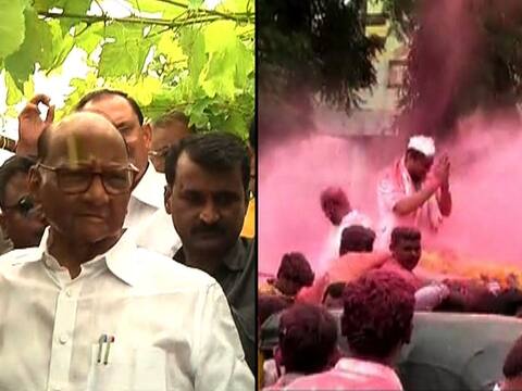 शरद पवार पीडित शेतकऱ्यांच्या बांधावर, तर रोहित पवारांवर लाखोंच्या गुलालाची बरसात
