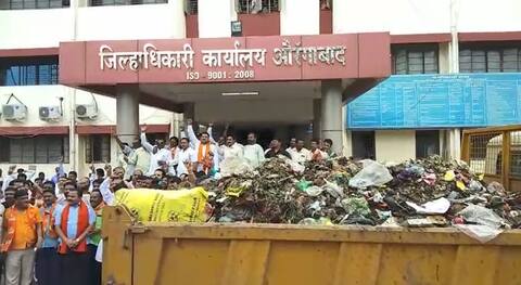 औरंगाबाद : औरंगाबाद महापालिकेतील सत्ताधारी शिवसेनेनेच कचरा कोंडीवरुन आंदोलन केलं आहे. औरंगाबाद जिल्हाधिकारी कार्यालयात शिवसेनेच्या कार्यकर्त्यांनी 3 ट्रक कचरा ओतला. त्यामुळे जिल्हाधिकारी कार्यालयाच्या प्रवेशद्वारावरच कचऱ्याचा डोंगर निर्माण झाला.