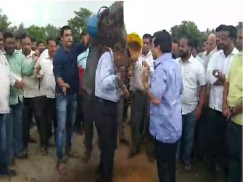 नितेश राणे आणि कार्यकर्त्यांनी हायवे उपअभियंत्याला गडनदी पुलावर बांधून चिखलाचं पाणी ओतलं
