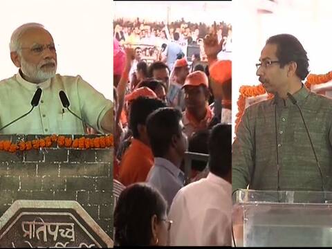 मोदींसमोरच शिवसैनिक आणि भाजप कार्यकर्त्यांमध्ये घोषणायुद्ध