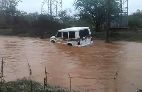 सोलापुरात ओढ्यात जीप वाहून गेली, बापलेक बचावले