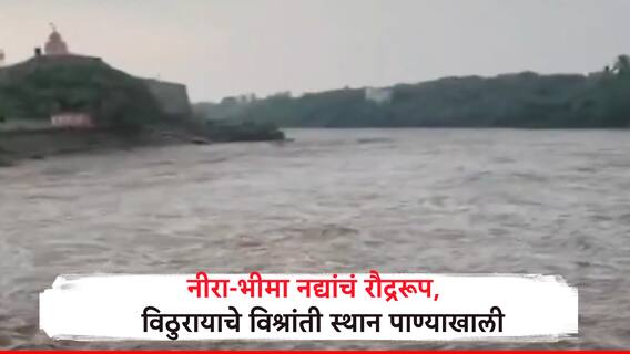 पंढरपूर तालुक्यात मुसळधार पाऊस सुरु असल्याने भीमा नदीची (Bhima River) पातळी कमालीची वाढली आहे. त्यातच गुरसाळे येथे भीमा नदी पात्रात असलेल्या महादेव मंदिरात (Mahadev Mandir) तीन महाराज अडकले होते. आपत्ती व्यवस्थापन (Disaster Management) पथकाने या महाराजांना बोटीतून सुखरूप बाहेर काढले आहे. अकलूजमध्ये ऐन मे महिन्यात नीरा नदीचे उग्र रूप पाहायला मिळत आहे. मे महिन्यात कायम कोरडी पडणारी नीरा नदी आज दुथडी भरून वाहू लागलेली आहे . आज सकाळी अकलूज येथील अकलाई मंदिरात पाणी शिरले आहे. नीरा नदीच्या काठावर असणाऱ्या या अकलाई मंदिर परिसरात मोठ्या प्रमाणात पाणी शिरले आहे. आज अमावस्येच्या निमित्त दर्शनाला आलेल्या अकलूजकरांनी नीरेचे हे रौद्ररूप पाहण्यासाठी गर्दी केली आहे.