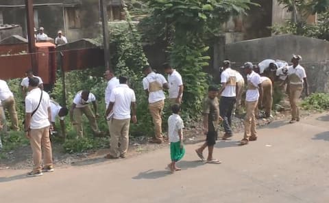 ठाणे: गांधी जयंतीनिमित्त देशभरात स्वच्छता अभियान सुरु आहे. यात राज्य राखीव पोलीस दलाचे जवानही सहभागी झाले. ठाणे जिल्ह्यातल्या अंबरनाथ तालुक्यात राखीव दलाच्या पोलिसांनी स्वच्छता अभियान राबवलं. अंबरनाथ तालुक्यात तळोजा रोडवर असलेलं नाऱ्हेण गाव राज्य राखीव दलाच्या बाळेगाव तुकडीने दत्तक घेतलं आहे. यावेळी राखीव पोलीस दलाचे सहाय्यक समादेशक रवींद्र महापदी यांच्यासह अधिकारी आणि कर्मचाऱ्यांनी या स्वच्छता अभियानात सहभाग घेतला. या तुकडीच्यावतीनं या गावात नेहमी प्रबोधनात्मक आणि सामाजिक उपक्रम राबवण्यात येत असतात. याचअंतर्गत आज गांधी जयंतीचं औचित्य साधत नाऱ्हेण गावात स्वच्छता अभियान राबवण्यात आलं. या अभियानात राज्य राखीव दलाचे सुमारे 550 जवान सहभागी झाले होते. शिवाय नाऱ्हेण गावातले ग्रामस्थ, स्त्रिया, लहान मुलं यांचाही सहभाग मोठा होता. या सगळ्यांनी गावातले रस्ते, शाळेचा परिसर, निवासी भाग या परिसरात स्वच्छता करून गाव स्वच्छ केलं. यावेळी ग्रामस्थ आणि जवानांनी स्वच्छतेची शपथही घेतली.