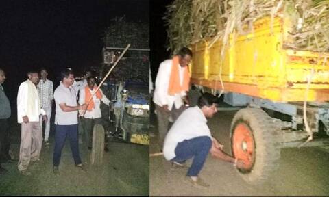 हंगाम सुरु होण्याआधी ऊस नेणाऱ्या ट्रॅक्टरची 'स्वाभिमानी'कडून तोडफोड