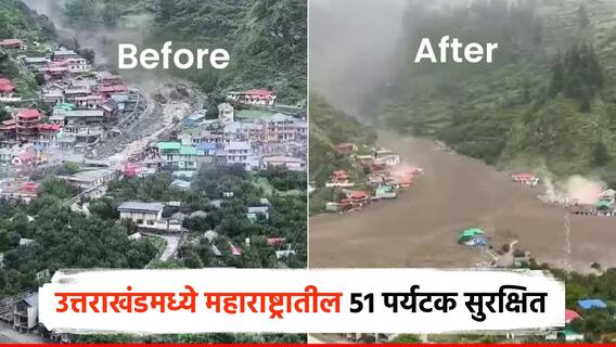 मुंबई : उत्तराखंड राज्यातील उत्तरकाशी जिल्ह्यातील धराली परिसरात मुसळधार (Rain) पाऊस व ढगफुटी झाल्याने मोठी दुर्घटना घडली आहे. या दुर्घटनेत आत्तापर्यंत 4 पर्यटकांचे निधन झाल्याची माहिती आहे. येथील ढगफुटीसदृश्य परिस्थितीमुळे खीरगंगा नदीला मोठा पूर आला व अनेक घरांचे नुकसान झाले आहे. दरम्यान उत्तराखंडमध्ये महाराष्ट्रातील विविध जिल्ह्यांतील पर्यटक उत्तरकाशीमध्ये अडकले होते. त्यामध्ये नांदेड जिल्ह्याती 11, सोलापूर (Solapur) जिल्ह्यातील 4 आणि इतर जिल्ह्यांतील 36 अशा एकूण 51 पर्यटकांचा समावेश असून हे सर्व पर्यटक सुखरूप असल्याची माहिती राज्य आपत्कालीन कार्य केंद्राकडून देण्यात आली.