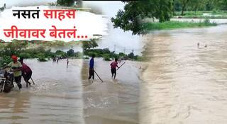 विदर्भात आज जोरदार पावसाचा इशारा देण्यात आला आहे. दरम्यान चंद्रपूरला (Chandrapur) आज रेड अलर्ट (Red Alert) देण्यात आला असून कुणीही ओसंडून वाहणारे नदी, नाले, ओढे ओलांडू नये, अशा सूचना प्रशासनाने वेळोवेळी दिल्या आहेत. मात्र, असे असतानाही नको ते साहस करण्याच्या प्रयत्नात अनेक अपघाताच्या घटना घडत असल्याचे नव्याने समोर आले आहे. चंद्रपूरच्या नागभीड तालुक्यातील विलम नाल्यात एक 10 वर्षीय युवक वाहून गेलाय. सध्या स्थानिकांच्या मदतीने त्याचे शोधकार्य सुरू आहे. मात्र ही संपूर्ण दुर्दैवी घटनेचा थरार कॅमेऱ्यात कैद झाला आहे. एकीकडे सततच्या मुसळधार पावसाने ग्रामीण भागातील नदी- नाले- ओढे दुथडी भरून वाहत आहेत.