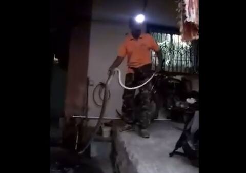 बाथरुममध्ये 8 फूट लांबीचा साप, सर्पमित्राच्या मदतीनं सापाची सुटका