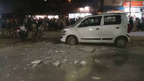 भिवंडीत उड्डाणपुलाचा भाग कारवर कोसळून वाहतूक कोंडी