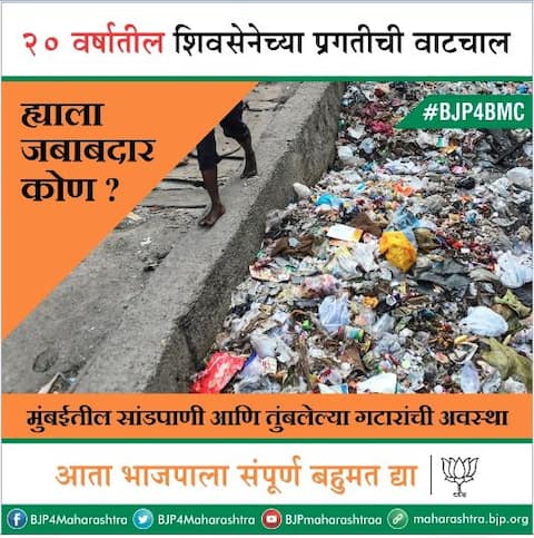 मुंबई : युती तुटण्याची घोषणा होण्यापूर्वी शिवसेना आणि भाजपमध्ये टीकांचे बाण सुरु होतेच, मात्र युती तुटल्याच्या अधिकृत घोषणेनंतर या टीकेला अधिक धार चढली आहे. शिवसेनेच्या 'डीड यू नो' पोस्टर्स भाजपने पोस्टरबाजी करुन उत्तर दिलं आहे. भाजपने मुंबई महापालिकेतील शिवसेनेच्या 'प्रगतीच्या वाटचाली'वर पोस्टरच्या माध्यमातून ताशेरे ओढले आहेत. रस्ते, ट्राफिक, झोपडपट्टी, प्रदूषण, पाणी, कचरा, शिक्षण अशा वेगवेगळ्या क्षेत्रातील महापालिकेच्या कारभाराचे वाभाडे काढण्यात आले आहेत. ह्याला जबाबदार कोण? असा सवाल भाजपने पोस्टरवर विचारला आहे. #BJP4BMC असा हॅशटॅग पोस्टरवर जोडला आहे. आता भाजपला बहुमत द्या, असं आवाहन केलं आहे.