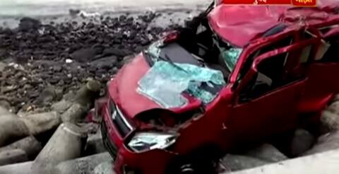 रस्त्यालगतचे लोखंडी बॅरिकेट तोडून ही कार कठडावरुन थेट समुद्रकिनारी आदळली. हा अपघात एवढा भीषण होता की, यामध्ये कारचा अक्षरश: चुराडा झाला.
