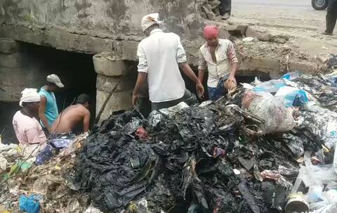 भिवंडीत कवडीमोल दराने कामगारांकडून नालेसफाई