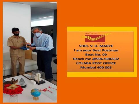 9 ऑक्टोबर रोजी आंतरराष्ट्रीय पोस्ट दिवस साजरा केला जातो. त्याअंतर्गत संपूर्ण आठवडा विविध कार्यक्रमांनी साजरा केला जातो. आज राष्ट्रीय मेल दिवस आहे. याचाच एक भाग म्हणून आज पोस्ट कार्यालयाच्या वतीने आपल्या विभागात येणाऱ्या पोस्टमनची आपणास संपूर्ण माहिती असावी. त्याचं पूर्ण नाव, त्याचा संपर्क क्रमांक आपल्या जवळ असावा यासाठी पोस्ट विभागाच्या वतीने आपल्या विभागातील 'पोस्टमन व्हर्च्युअल कार्ड' तयार करण्यात आलेले आहे. या कार्डचे अनावरण आज उद्योगपती रतन टाटा यांच्या हस्ते करण्यात आलं. या वेळी रतन टाटा ज्या परिसरात राहतात त्या कुलाब्यातील त्यांच्या पोस्टमनची माहिती देणारे पोस्टमन व्हर्च्युअल कार्ड रतन टाटा यांना वितरित करण्यात आलं. रतन टाटा यांच्या विभागाचा नंबर 9 आहे. तर त्यांच्या पोस्ट मनचे नाव आहे V.D. मारिया. व्हर्च्युअल कार्डमुळे पोस्टमनशी आपली अधिक जवळीक वाढणार आहे. पोस्ट संदर्भातल्या सेवा, बँकिंग सेवा यासह अन्य सेवा पुरविण्यासाठी पोस्टमॅन आपली मदत करणार आहे. त्यामुळे हे कार्ड महत्त्वाचं ठरत आहे.
