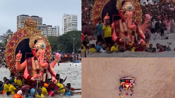 Lalbaugcha Raja Visarjan: मुंबईसह जगभरात प्रसिद्ध असलेल्या लालबागचा राजाचे रविवारी रात्री नऊ वाजता गिरगाव चौपाटीवर विसर्जन करण्यात आले. यंदा लालबागचा राजाच्या विसर्जनासाठी तब्बल 33 तास लागले. लालबागचा राजा शनिवारी सकाळी 10 वाजता विसर्जनासाठी मंडपातून निघाला होता. यानंतर तो मजल दरमजल करत रविवारी सकाळी आठ वाजता गिरगाव चौपाटीवर दाखल झाला होता. यानंतर दीड-दोन तासांत लालबागचा राजाचे (Lalbaugcha Raja) विसर्जन होणे अपेक्षित होते. मात्र, सुमद्राला आलेली भरती आणि नवीन तराफ्यावर मूर्ती न चढवता आल्याने लालबागचा राजाचे सकाळी दहा वाजता होणारे विसर्जन रात्री 9 वाजता झाले. हा संपूर्ण काळ लालबागचा राजा समुद्रातच बसून होता. शनिवारी सकाळी दहाच्या आसपास समुद्राला मोठी भरती आली. तोपर्यंत लालबागचा राजाची मूर्ती समुद्रात नेण्यात आली होती. भरती आल्यानंतर समुद्राचे पाणी झपाट्याने वाढत गेले. त्यामुळे लालबागचा राजाची जवळपास अर्धी मूर्ती पाण्यात बुडाली होती.