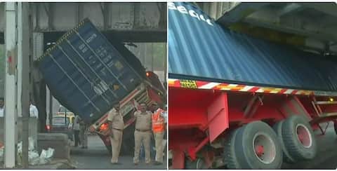 किंग्ज सर्कल रेल्वे पुलाखली पहाटे एक कंटेनर अडकला.