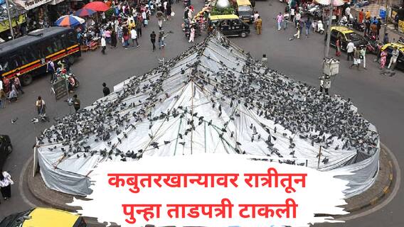 मुंबई : गेल्या काही दिवसांपासून चर्चेत असलेल्या दादरच्या कबुतरखान्यावरुन आता पुन्हा वाद वाढण्याची शक्यता आहे. दादरमधील कबुतर खान्यावर पुन्हा ताडपत्री टाकण्याच्या कामाला सुरुवात झाली आहे. मुंबई महापालिकेकडून बांबू आणि ताडपत्री लावण्याचं काम सुरू झालं असून या ठिकाणी मोठ्या प्रमाणात पोलीस बंदोबस्त तैनात करण्यात आला आहे.
