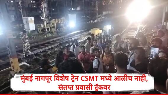 मध्यरात्री 12 वाजल्यानंतर सुटणारी मुंबई नागपूर विशेष ट्रेन सहा तास उलटल्यानंतर देखील न आल्यानं संतापलेल्या प्रवाशांनी छत्रपती शिवाजी महाराज टर्मिनसमध्ये आक्रमक भूमिका घेतली. यावेळी प्रवाशी रेल्वे प्रशासनाच्या अधिकाऱ्यांना घेराव देखील घातला. मुंबई नागपूर विशेष ट्रेनच्या प्रवाशांनी सहा वाजता निघणारी गीतांजली एक्सप्रेस जाऊ देणार नाही असा पवित्रा घेतला. संतापलेल्या प्रवाशांनी रेल रोको करण्याचा निर्णय घेतल्याचं देखील दिसून आलं. काही प्रवासी रेल्वे ट्रॅकवर जाऊन उभे राहिले होते. गीतांजली एक्स्प्रेस ही दररोज सकाळी 6 वाजता छत्रपती शिवाजी महाराज टर्मिनस, मुंबईहून नागपूरला जाते. विशेष ट्रेनचे प्रवासी ही ट्रेन सुटण्यापूर्वी आक्रमक झाले होते.