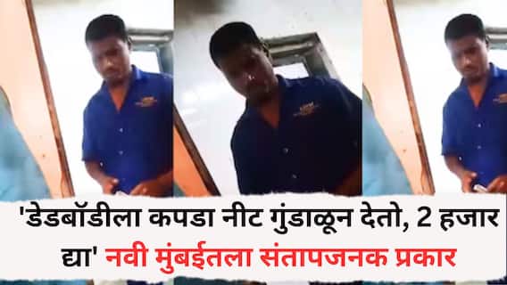 नवी मुंबई महापालिकेच्या वाशी रुग्णालयातील शवागृहामधील हा संतापजनक प्रकार कॅमेऱ्यात कैद झाला आहे. मृतदेह गुंडाळण्यासाठी लागणाऱ्या कपड्यांसाठी तब्बल दोन हजार रुपये उकळल्याची ही घटना आहे. एका 23 वर्षांच्या तरुणीच्या आत्महत्येनंतर नातेवाईक मृतदेह ताब्यात घेत असताना "कपडे व्यवस्थित गुंडाळून देतो" असं सांगत रुग्णालयातील कर्मचाऱ्याने नातेवाईकांकडून पैसे उकळल्याचं कॅमेऱ्यात कैद झालं आहे.