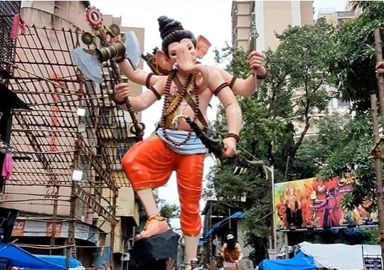 Ganeshotsav 2022 : यंदाचा गणेशोत्सव खास आहे. कारण यावर्षी कोणत्याही निर्बंधांशिवाय गणपती उत्सव (Ganpati Festival 2022) धूमधडाक्यात आणि जल्लोषात साजरा होणार आहे. तसंच यावेळी गणेश मूर्तींच्या (Ganesh Idol) उंचीवरही कोणतीही मर्यादा नाही. त्यामुळे आता विविध गणेश मंडळांमध्ये उंच मूर्तींची स्पर्धा पाहायला मिळणार आहे. यंदाच्या गणेशोत्सवात महाराष्ट्रातील सर्वात उंच मूर्ती ही मुंबईच्या महाराजांची (Mumbaicha Maharaja) ठरली आहे. मुंबईतील खेतवाडीमध्ये ही मूर्ती साकारण्यात आली आहे.