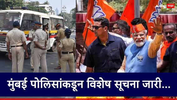 नरेंद्र मोदींच्या मुंबईतील या 'रोड शो'बाबत मुंबई पोलिसांकडून विशेष सूचना जारी करण्यात आली आहे. पंतप्रधान नरेंद्र मोदींची आज मुंबईत होणारी रॅली तर 17 मे रोजी मुंबईत शिवतीर्थावर होणाऱ्या सभेच्या पार्श्वभूमिवर मुंबई पोलिसांकडून आदेश देण्यात आले आहेत. हे आदेश आज पासून 17 मे च्या मध्यरात्रीपर्यंत लागू करण्यात आले आहे.