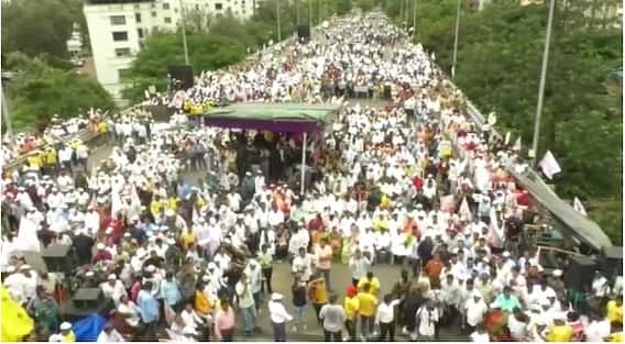 Navi Mumbai Airport Naming Issue : नवी मुंबई आंतरराष्ट्रीय विमानतळाला दि बा पाटील यांचे नाव देण्यासाठी शुक्रवारी (24 जून) सर्वपक्षीय कृती समितीतर्फे दि बा पाटील यांच्या नवव्या स्मृतिदिनानिमित्त सिडको घेराव आंदोलनाचे आयोजन करण्यात आले होते. मुंबई, रायगड, ठाणे आणि पालघर जिल्ह्यातून मोठ्या संख्येने प्रकल्पग्रस्त या आंदोलनासाठी आले होते. आंदोलनाची पुढील दिशा ठरवण्यासाठी हे आंदोलन महत्त्वाचे मानले जात होते. या आंदोलनाला भाजपच्या आमदारांची मोठी उपस्थिती होती, ज्यामध्ये प्रशांत ठाकूर, गणेश नाईक आणि मंदा म्हात्रे यांचा समावेश आहे. नवी मुंबई आंतरराष्ट्रीय विमानतळ तयार होण्यासाठी आणखी 3 वर्षांचा कालावधी लागणार असून दि बा पाटील यांचेच नाव विमानतळाला देण्यासाठी सरकारला भाग पाडू असा निश्चय यावेळी करण्यात आला. यासोबतच दरवर्षी दिबांच्या स्मृतिदिनानिमित्त हे आंदोलन धगधगत ठेऊया, असा एल्गार यावेळी कृती समितीतर्फे करण्यात आला.