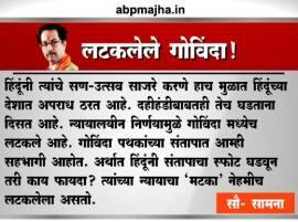 मुंबई: 'देशात हिंदूंनी त्यांचे सण-उत्सव साजरे करणं हाच मुळात अपराध आहे.' अशी बोचरी टीका शिवसेनेनं आपल्या सामना या मुखपत्रातून केली आहे. 'न्यायालयीन निर्णयामुळे गोविंदा मध्येच लटकलेले आहेत. लोकांनी निवडून दिलेलं सरकार हात चोळत बसलं असून कोर्टच राज्यकारभार करीत आहे.' अशी थेट टीका करीत सेनेनं भाजपवरही निशाणा साधला आहे. दरम्यान, सुप्रीम कोर्टानं दहीहंडी नियमांच्या अटीसंदर्भातील पुनर्विचार याचिकेवर विचार करण्यास नकार दिला. जोगेश्वरीमधील जय जवान या पथकानं यासंदर्भातली याचिका दाखल केली होती. ज्यात 20 फुटांपेक्षा अधिकचे थर लावण्यात मूभा द्यावी, अशी मागणी करण्यात आली होती. दहीहंडीवरच्या कोणत्याही नियमांवर फेरविचार होणार नाही. असं कोर्टानं पुन्हा एकदा स्पष्टपणे बजावलं. त्यानंतर आज सामनातून या निर्णयाबाबत सेननं नाराजी व्यक्त केली आहे. एक नजर सामनाच्या अग्रलेखावर: लटकलेले गोविंदा! * लोकांनी निवडून दिलेले सरकार हात चोळत बसले आहे आणि न्यायालय राज्यकारभार करीत आहे. म्हणून मुंबईतील ओल्या व सुक्या कचर्याचे काय करायचे इथपासून ते दहीहंडीचे किती थर लावायचे इथपर्यंत न्यायालये फर्मान सोडत आहेत. जर राज्यकर्ते हुकूमशहा बनतात म्हणून टीका होत असेल तर न्यायालयांची हुकूमशाही तरी स्वीकारायची काय? हिंदूंचे सण-उत्सव आले की न्यायालयांतील मटकी तडकू लागतात व त्या तडकत्या मटक्यांतून काय बाहेर पडेल ते सांगता येत नाही. * आता दहीहंडीची उंची आणि ठरवून दिलेले नियम यात कोणतेही बदल करण्यास सर्वोच्च न्यायालयाने नकार दिला आहे. म्हणजे मुंबई उच्च न्यायालयाने आधी दिलेला निर्णयच कायम राहणार आहे. थोडक्यात, यावर्षी दहीहंडीचे थर २० फुटांपेक्षा जास्त रचता येणार नाहीत आणि दहीहंडी पथकात १८ वर्षांखालील गोविंदांना सहभागी होता येणार नाही, या न्यायालयीन निर्बंधांचे पालन करावेच लागणार आहे. * साहजिकच सर्वच गोविंदा पथकांमध्ये प्रचंड नाराजी दिसत आहे. त्यामुळे गोविंदा पथकांचा तो नेहमीचा जल्लोष यावेळी दिसेल काय, हा एक प्रश्नच आहे. अर्थात गोविंदा पथके नाराज झाली म्हणून त्यांनी घरात बसू नये. हिंदू एकजुटीचे विराट दर्शन यानिमित्ताने घडवावे. म्हणजे हिंदूंचा आपल्या सण-उत्सवांबाबतचा आत्मविश्वास अधिक दृढ होईल. बरं, न्यायालयाने सुरक्षेचे सर्व उपाय योजूनच दहीहंडीचे मटके फोडावे असेही बजावले आहे. म्हणजे आता काय करायचे? अंगात चिलखत घालून थर लावावेत की बुलेटप्रूफ काचांचे पिंजरे लावून थर चढवायचे या प्रश्नांचा निचरा होणे गरजेचे आहे. याप्रश्नी ज्या राजकीय पुढार्यांनी राजकीय ‘नाद’ केला तेही शेवटी जे काही असेल ते नियमानेच करा, शिस्त पाळा, चुकीचे काही करू नका, अशा समन्वयाच्या मार्गदर्शनी भूमिका घेत आह