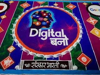 गेली 35 वर्षांपासून साहित्य व ललितकला संस्कृतीचे संवर्धन करणाऱ्या संस्कार भारतीने 'डिजिटल बनो' मार्फत जगाशी जोडणाऱ्या सर्वच Social App सोबतच पारंपरिक चिन्हांचा देखील समावेश या रांगोळीत केलेला आहे.