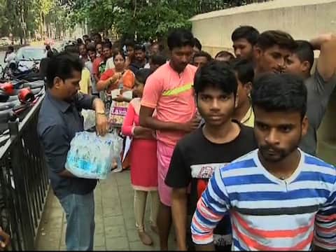 बँकांबाहेर लोकांच्या रांगा, शिवसेनेकडून चहा-बिस्किटांचं वाटप