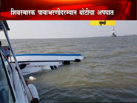 अरबी समुद्रात आयोजित शिवस्मारकाच्या पायाभरणी कार्यक्रमाला जाणारी स्पीड बोट खडकावर आपटून बुडाली.