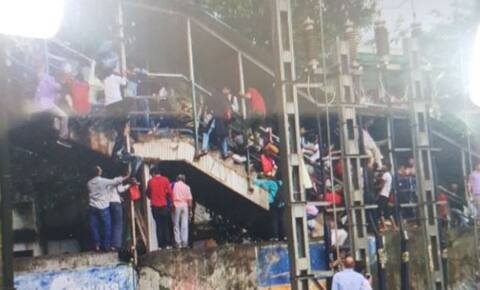 - त्यामुळे बाहेर पडणाऱ्या पादचारी पुलावर गर्दी झाली.