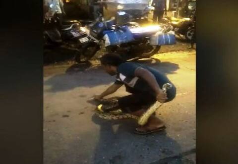 ठाण्यातील गजबजलेल्या बाजारात महाकाय अजगर, लोकांची पळापळ