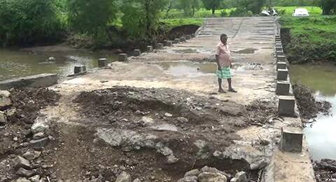 वसई: वसईमध्ये पहिल्याच पावसात तेवीस लाख रूपये खर्च करून बांधलेला रस्ता खचून गेला आहे. वसई तालुक्यातील मेढा ग्रामपंचातीच्या हद्दीत साखरपाडा-घोडविंदेपाडा-भोईरपाडा असा हा पूल महिन्याभरापूर्वीच बांधण्यात आला होता. मात्र, कालपासून वसईत पावसानं लावलेल्या दमदार हजेरीत संपूर्ण रस्ता वाहून गेला तसंच पुलालाही तडे गेले. जर पावसाचा जोर असाच कायम राहिला तर संपूर्ण पूलही पावसात वाहून जाईल. अशी शक्यता वर्तवण्यात येत आहे. अवघ्या महिन्याभरातच पुलाची बिकट अवस्था झाल्यानं मेढा ग्रामस्थांकडूनही संताप व्यक्त केला जात आहे. दरम्यान, याप्रकरणी खासदार बळीराम जाधव यांनी चौकशी करून दोषींवर कारवाई करण्याची मागणी केली आहे.