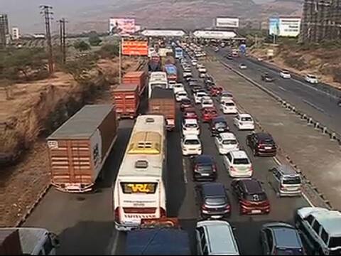 एक्स्प्रेस वे जाम, ऑईल सांडल्याने वाहतूक रखडली