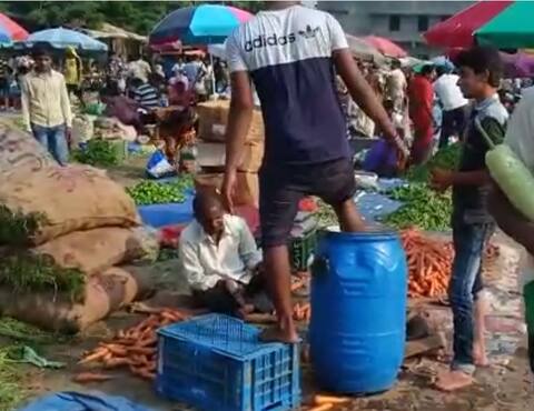 एक भाजी विक्रेता चक्क आपल्या पायाने ड्रममध्ये गाजर कोंबत आहे. ड्रममध्ये असलेल्या पाण्यात गाजर टाकून ते स्वच्छ करण्यासाठी तो चक्क पायानं ते गाजर तुडवताना दिसतो.