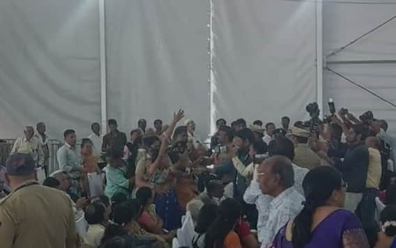 यावेळी उपस्थित पोलिसांनी घोषणा देणाऱ्यांना ताब्यात घेतलं. यावेळी त्यांनी माध्यमांशी संवाद साधत म्हटलं की, राज्याचे मुख्यमंत्री फक्त फित कापण्यात व्यस्त आहेत. तसेच सरकार स्थापन करुन खूप मोठी कामगिरी केल्याचे दाखवत आहेत. मात्र राज्यात शेतकऱ्यांच्या आत्महत्यांचे सत्र थांबायला तयार नाही. मुख्यमंत्री भाषण सुरु असताना विदर्भवाद्यांनी कागदं देखील भिरकावली. यावेळी विदर्भातील शेतकरी आत्महत्याकडे देखील लक्ष वेधले गेले. यावेळी झालेल्या गोंधळात पोलिसांनी तिघांना ताब्यात घेतले आहे.