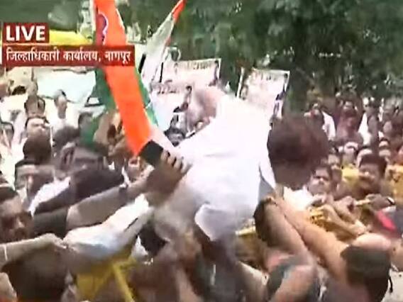 Nagpur congress Agitation : काँग्रेस नेते राहुल गांधींची ईडीनं चौकशी केली आहे. या चौकशीच्या विरोधात काँग्रेस कार्यकर्ते आक्रमक झाले आहेत. आज नागपूरमध्ये काँग्रेसच्या वतीनं जिल्हाधिकारी कार्यालयावर मोर्चा काढण्यात आला. यावेळी पोलीस आणि आंदोलक आमने सामने आल्याचे पाहायला मिळाले. यावेळी भाजपविरोधी आंदोलकांनी जोरदार घोषणाबाजी केल्याचं पाहायला मिळालं. यावेळी काँग्रेसच्या आंदोलकांनी राहुल गांधींच्या समर्थनार्थ जोरदार घोषणाबाजी केली. पोलिसांनी लावलेल्या बॅरिकेट्सवरुन पुढे जाण्याचा आंदोलकांनी प्रयत्न केला. यावेळी काही आंदोलकांना पोलिसांनी ताब्यात घेतलं आहे.