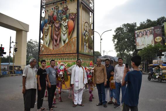 कॉटन मार्केट चौकातील बैलजोड़ी आणि शेतकरी दृश्य